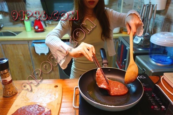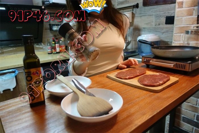 “哎呀~~小色狗我叫你学做牛扒你蹲在我脚底下看什么呀~”