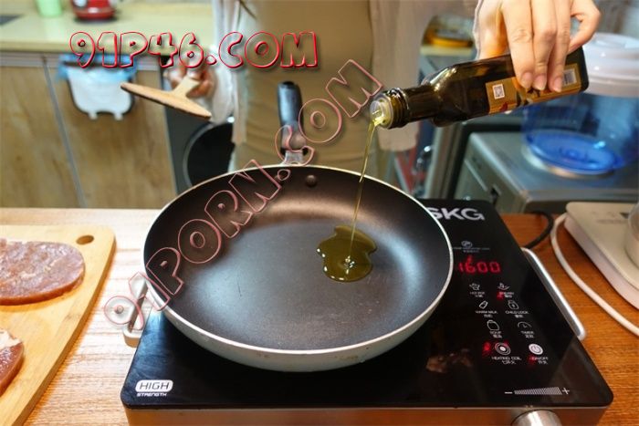 “好吧~我们准备开始煎了,先放点油~”